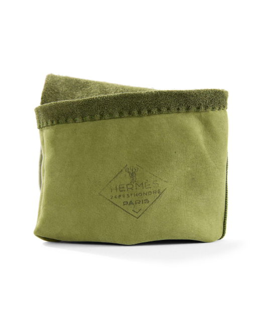 Ce lot exceptionnel illustre parfaitement l’esthétique Hermès de l’après-guerre, où les accessoires étaient pensés comme des ensembles coordonnés, alliant fonctionnalité, élégance et savoir- faire artisanal.