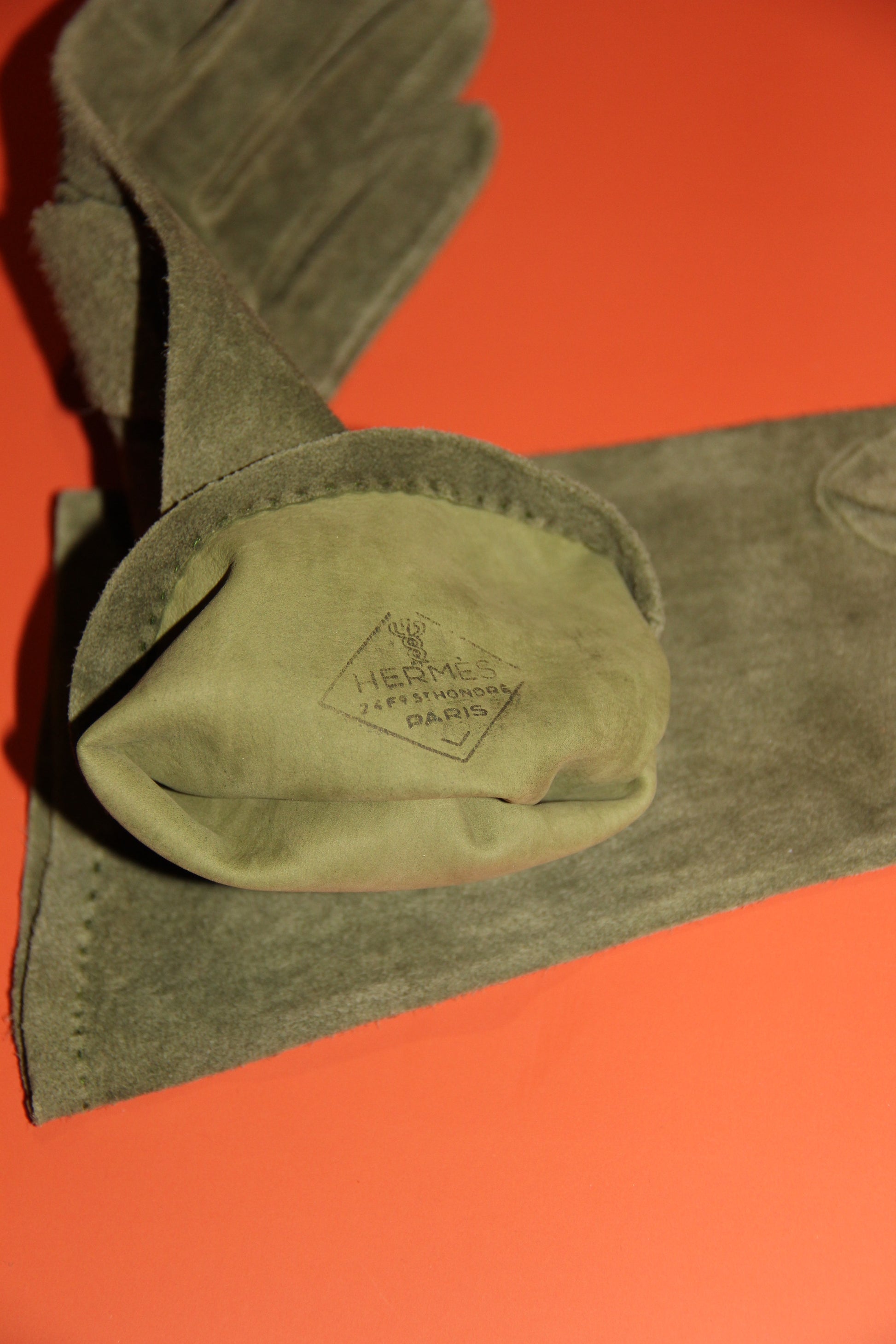 Nous offrons une paire de gants Hermès de petite taille en doblis vert (T. n°7 -small) pour petites mains.